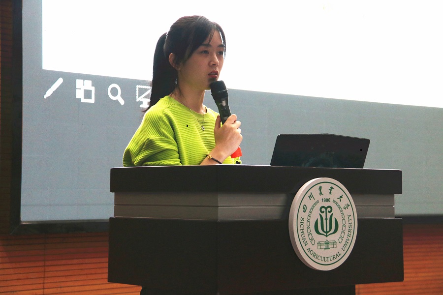 最后,来自金融学2018级研究生王童带来了关于科研的分享。王童在本科期间主持参与了国家级创新训练计划,科研兴趣计划、学院科创基金等多个科研项目,公开发表了5篇中英文核心期刊学术论文;获得川农优秀学士学位论文、科研单项奖等多个科研奖项。 一上台王童就向新生们抛出了这三个问题:什么是科研?经济学人的科研应该探索什么?应该用什么方法?并通过“颜值越高收入就越高吗”这个话题逐步引入对科研的详细介绍,向新生讲解了做科研的大致流程和研究方式,鼓励大家尽早开始准备,她告诫大家:“你现在努力的程度决定了你未来的高度,而一个好的规划是成功的开始。”