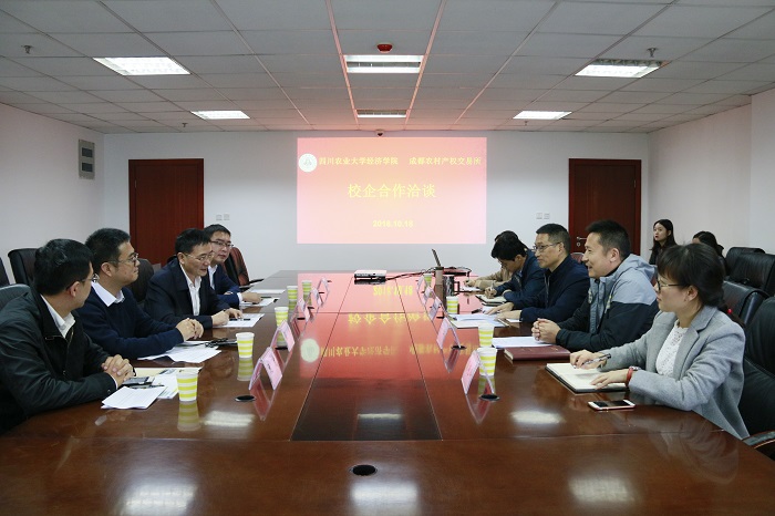10月18日上午,beat365正版唯一官网与成都农村产权交易所有限责任公司校企合作洽谈会在1教403成功举行。成都金融控股集团投资总监兼成都农村产权交易所执行董事兼总经理秦仕魁、成都农村产权交易所副总经理张杰、成都农村产权交易所总经理助理唐鹏程、成都农村产权交易所综合管理部负责人阮成等一行7人及beat365正版唯一官网党委书记漆雁斌、副院长吴平、金融系、投资系负责人等参与座谈。