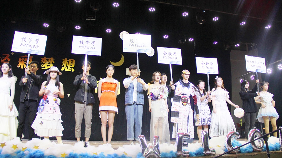 又一轮互动结束后,迎来了晚会的最终篇章“感恩”。励志故事《梦 夏天》是身边许许多多同学的缩影;温情又贴近生活的《那些年,我们好像很有钱》,不禁让我们感慨万千;经院学子的丰富想象力和创造力淋漓尽致地展现在了《梦想纸装秀》上,奇异独特的造型凸显着同学们青春的个性与风采,在带来欢笑的同时也让观众们感受到了艺术的魅力,这场精彩绝伦的视觉盛宴将晚会推向了高潮。最后,助班们倾情献上一曲耳熟能详的《宠爱》为寻梦晚会划上了圆满的句号,在场的掌声和欢呼声此起彼伏、接连不断。