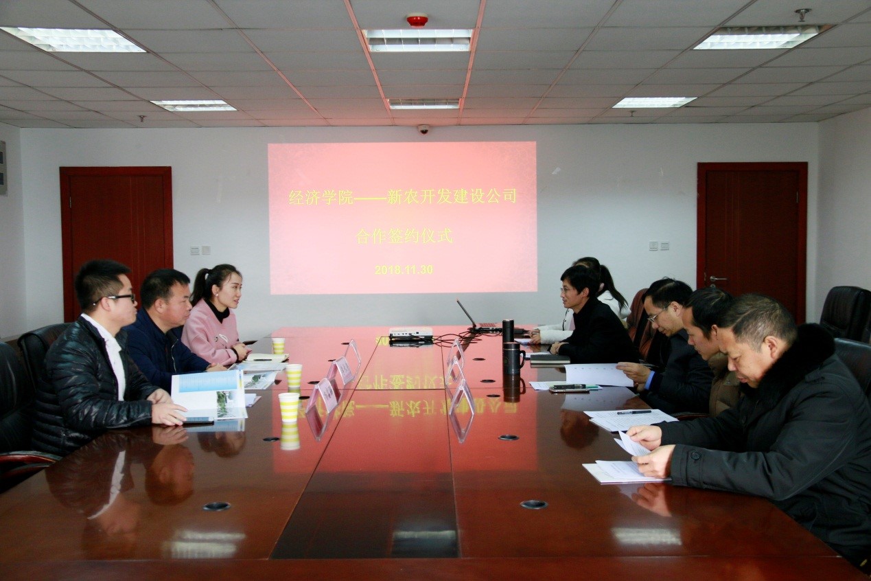 蒋远胜表达了学院对双方合作的支持和重视。他介绍了学校和学院的基本状况,认为新农公司业务领域与学院在人才培养特色和发展定位上有很好的契合点,双方可以发挥各自优势,整合资源,围绕乡村振兴重大项目的规划和实施,为公司提供智库和人才培训等支持。