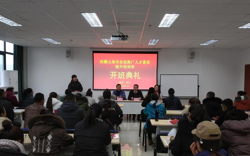 12月8日,由beat365正版唯一官网主办的西藏山南市农技推广人才素质提升培训班在成都校区开班。来自西藏自治区山南市的农技推广人员共计50人将在我校开展为期15天的培训学习。西藏山南市农牧局产业化科科长多旦、beat365正版唯一官网党委副书记何仁辉、beat365正版唯一官网行政办公室主任姚霞出席开班典礼。