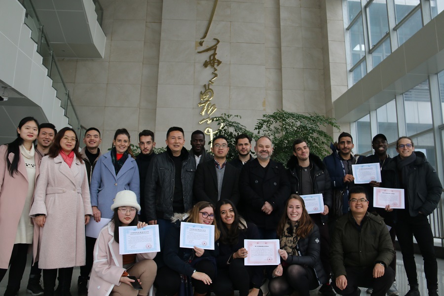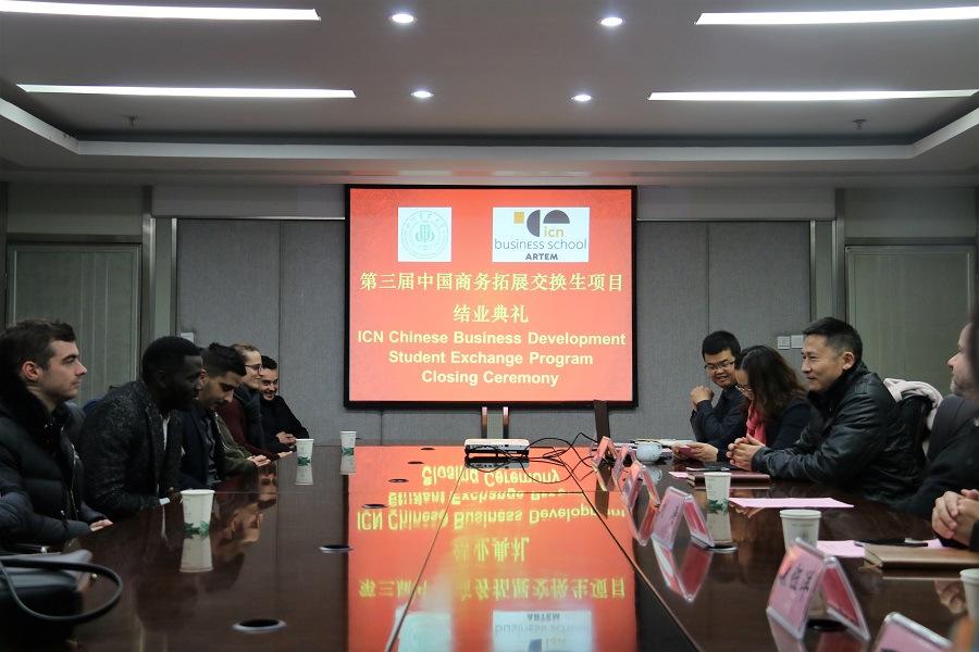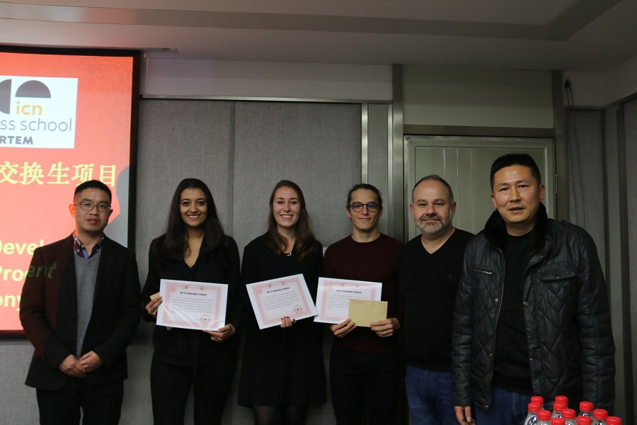 12月20日,beat365正版唯一官网举行第三届中国商务拓展交换生结业典礼。教务处副处长刘涛,beat365正版唯一官网副院长吴平,法国南锡高等商学院项目主任Gérald Duffing,学院国际合作项目负责人沈倩岭及相关授课老师,项目全体学生参加此次典礼。典礼由沈倩岭主持。