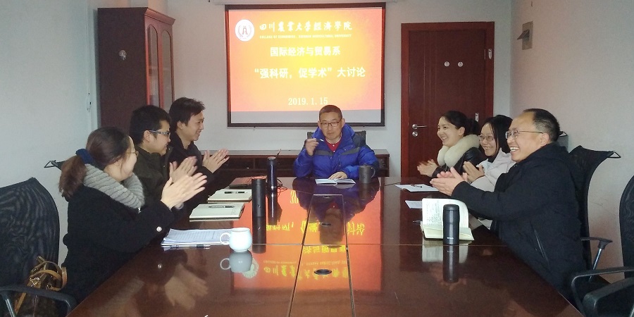 按照学院党委关于开展“强科研•促学科”专题大讨论的通知精神,1月15日下午,国贸系在1教425室开会,组织学习讨论,形成共识,凝聚合力,强科研促学科。学院党委书记漆雁斌及国贸系全体教师参加了会议。
