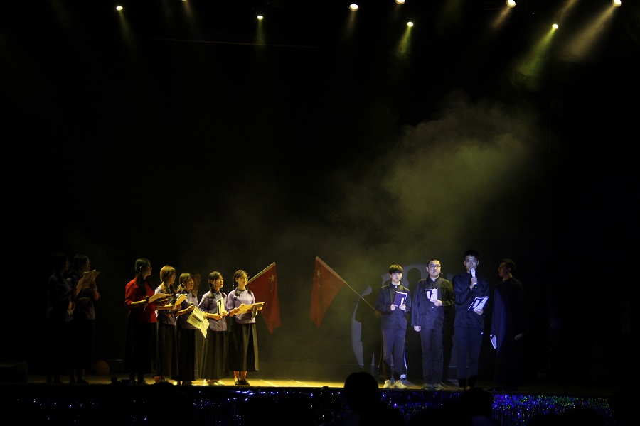 晚会采用参赛者表演和艺术团表演相结合的方式,以话剧、乐器演奏、舞蹈、朗诵等表演形式来表现此次晚会“青春”、“爱国”的主题。话剧团的《热带惊雷》在幽默搞笑之中展现出人民对和平的渴望;琵琶独奏《十面埋伏》乐曲激荡震撼人心;流行舞团的《 On My Own 》青春飞扬,活力四射;钱虹宇的《月光下的中国》诵出了对祖国的一片热忱……。同学们深深地被节目传达的情感所感染,正如主持团的表演节目《五四的火焰》中所朗诵的一般,“五四的火焰是青春的火焰,我们求索,我们奋斗,……只为谱写中华民族更加壮丽的明天……激情无限,壮志前行……”,充分展示了我院学子爱党爱国的真挚情怀、积极奋斗的人生态度和富有青春活力的精神面貌。