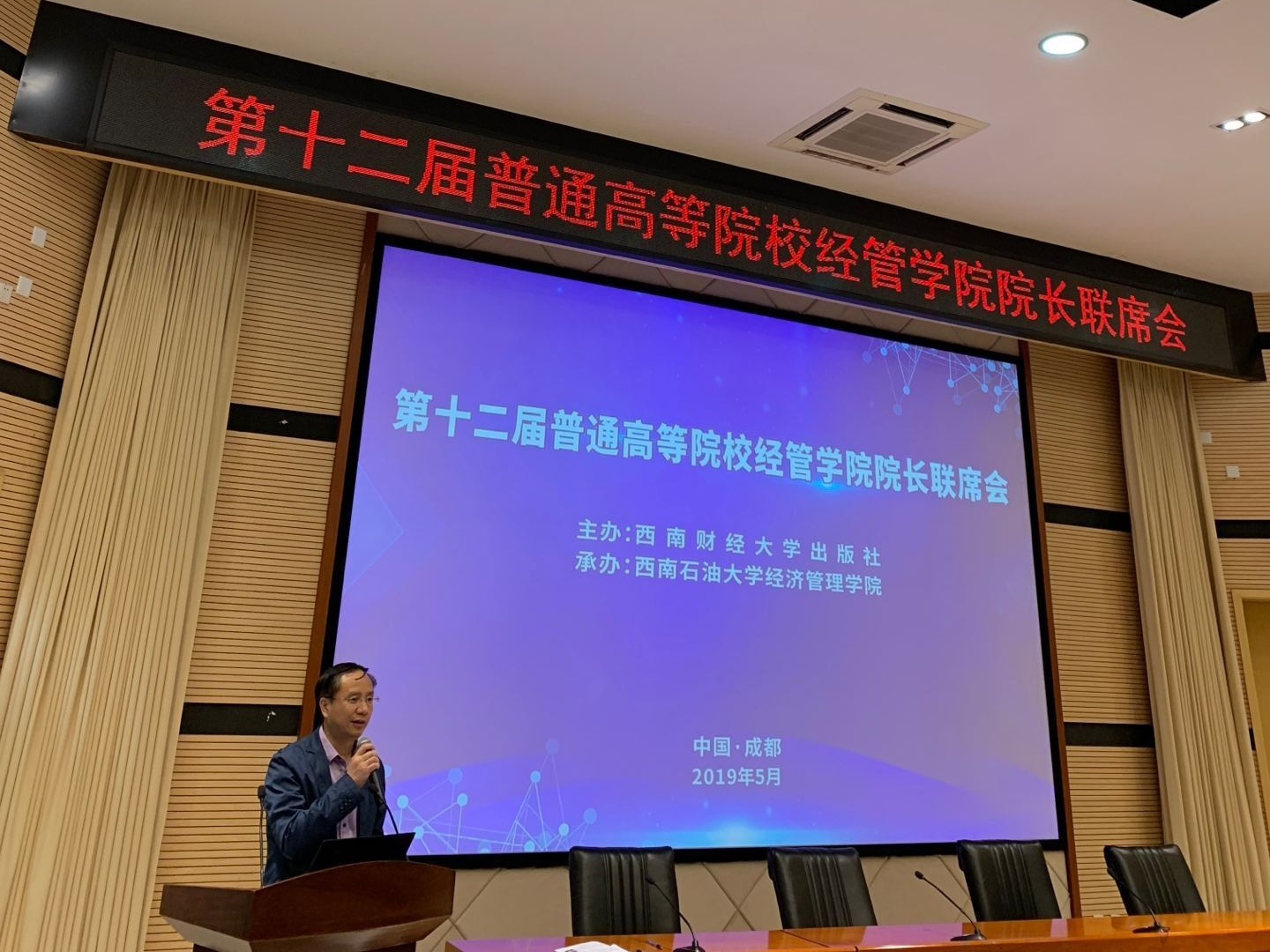 5月11日,第十二届普通高等院校经管学院院长联席会在西南石油大学思学楼A114学术报告厅召开。beat365正版唯一官网院长蒋远胜教授出席并主持了学术交流会和院长论坛,beat365正版唯一官网副院长吴平教授、投资系主任王玉峰教授、金融学系专业主任刘艳副教授参加了此次会议。