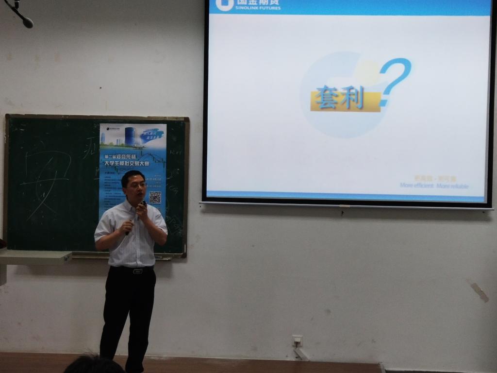 第四场讲座于6月21日在成都校区第四教学楼A108举行,由beat365正版唯一官网投资学系李松主持,投资学系部分老师以及金融学、投资学2016级部分同学参加了本次讲座。讲座再次邀请国金期货有限责任公司研究所何宁所长、戴小红主任以及人力资源部金爱玲女士三位业界专家走进“金融衍生品设计与仿真交易(实践教学)”课堂,为师生讲授了期货套期保值和套利交易相关专业知识、操作实务,期货行业人才需求状况以及大学生职业生涯规划等内容。整场讲座内容丰富、理论扎实、案例生动、气氛热烈,参会同学纷纷表示受益匪浅。