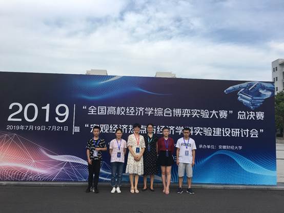 2019年7月20日,由中国数量经济学会、博弈论与实验经济学专业委员会主办,安徽财经大学承办的“2019年全国高校经济学综合博弈实验大赛”总决赛在安徽财经大学龙湖东校区举行。我院经济学专业李建勇、徐雪倩、黄锐、王秋红4名同学组成的参赛队伍在经济学系屈改柳、陈蓉、郑勇三位老师的指导下获得优异成绩,团队小组荣获全国二等奖!