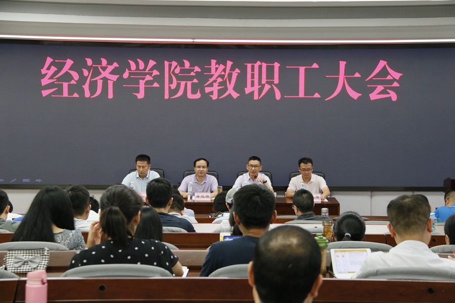 会上,院长蒋远胜代表学院领导班子感谢在假期冒着酷暑辛勤工作的教职工,传达了学校党委中心组(扩大)暨中层领导干部会议精神,并分析了当前beat365正版唯一官网、经济学科发展面临的新形势。一是全球经济形势下滑、中美贸易摩擦升级,保持经济5%增长率的只有中国、印度、东盟5国三大经济体,这给我们的经济金融科学研究带来了新的课题,也给我们的学生就业带来了巨大的挑战。二是“一流学科建设”和“一流本科专业建设”是当前高校发展新的引擎和动力,也是学院当前和今后比较长一段时期的发展方向和工作遵循。三是学校领导班子处在新老交替的时期,年轻干部的补充将成为常态。四是在学院空间资源受限的情况下,继续推进实验室建设。五是高级职称晋升改革对青年教师成长利好。