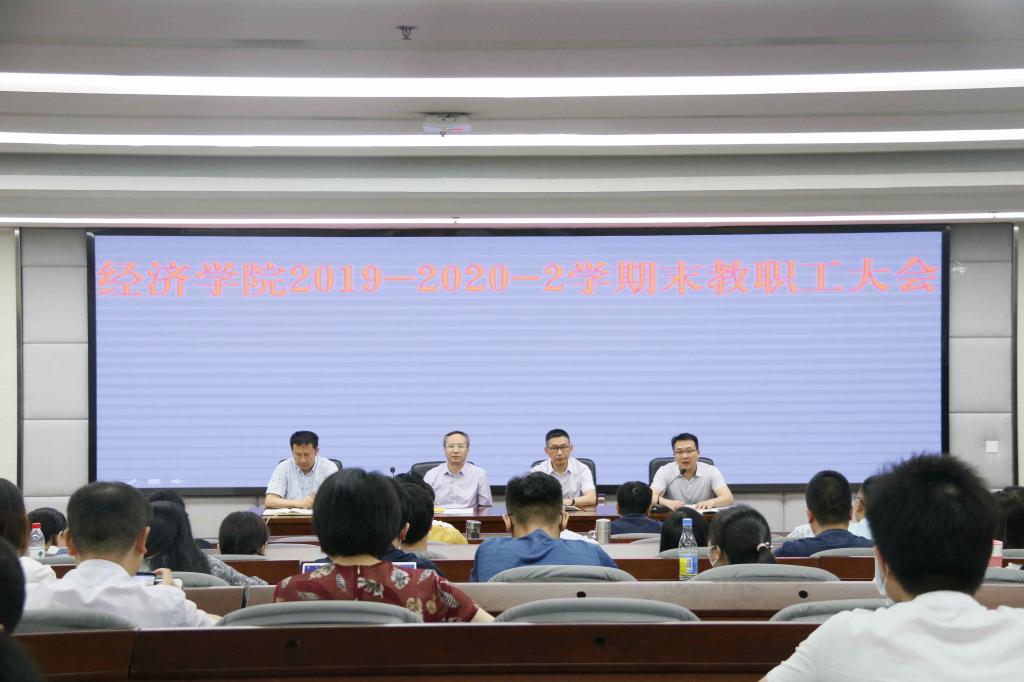 会上,院长蒋远胜高度肯定了全院教职工在学校、学院党委行政的坚强领导下,抗击疫情,敢于担当,克服困难,圆满完成了交换生全部安全回国回校、线上线下教学有序推进、毕业授位仪式按防控要求如期举行等工作。他全面回顾了本学期学院的学科专业建设、研究生培养、科研与社会服务、国际合作办学等各项工作,剖析了线上教学离学生家长期待还有距离、实验教学没有全部按时按量完成和一流本科专业建设的步伐迈得还不够快等问题。他指出,今后学院的各项工作要尽快实现两个转变,一是实现由数量到质量的转变,而是实现由重科研到教学科研并重的转变。他详细部署了国家社科基金申报、西南农村金融论坛、一流专业建设等下一步工作。蒋远胜院长特别叮嘱全院教职工在暑期要注意调研安全、严守学术道德、坚持廉洁从教和遵守财经纪律。