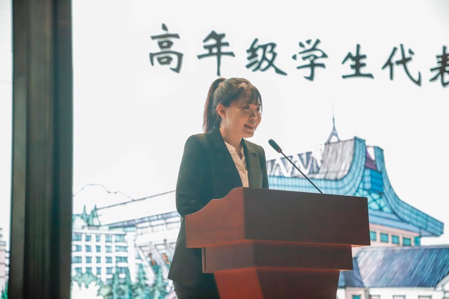高年级学生代表、金融学201801班的陈秋悦发言。陈秋悦自入学以来学习成绩和综合测评成绩一直名列专业前三,长期担任学校、学院的主要学生干部,现任beat365正版唯一官网学生会主席,曾获多项校、院级荣誉和奖励。她期望2020级的同学们能够拥抱学院,感受集体;择善而从,坚持不懈;勇于担当,乐于奉献。在四年的大学时光中,能够不忘初心、不畏险阻、不负时代,用汗水去浇灌梦想,用奋斗书写青春华章。