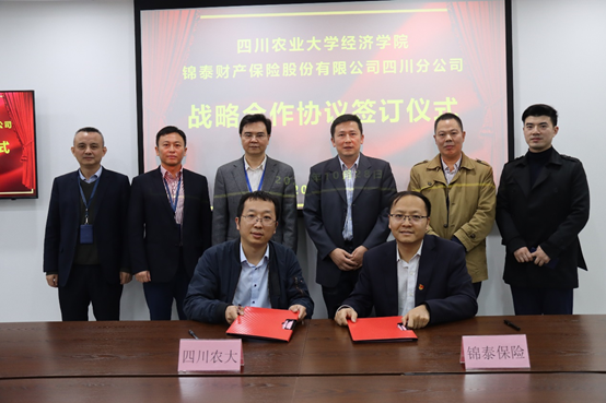 10月28日,学院副院长吴平教授率队,金融系肖诗顺教授、主任臧敦刚副教授、副主任徐斌博士等一行5人前往锦泰财产保险股份有限公司四川分公司签订战略合作协议,四川分公司业务负责人对此次到访表示热烈欢迎。