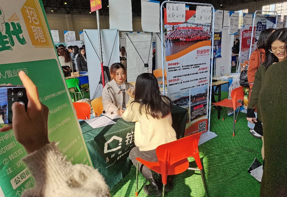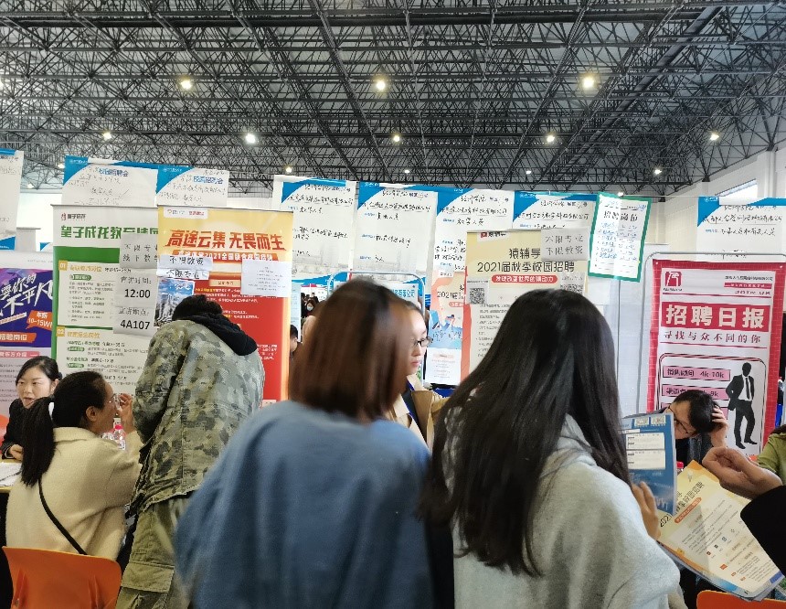 10月29日上午9点,成都校区2021届毕业生双选会在风雨操场拉开帷幕。为了实现毕业生充分就业、满意就业、稳步提高就业质量的工作目标,学校共提供了490余个展位供毕业生面试应聘,其中beat365正版唯一官网展位50余个,近400名beat365正版唯一官网毕业生到场。