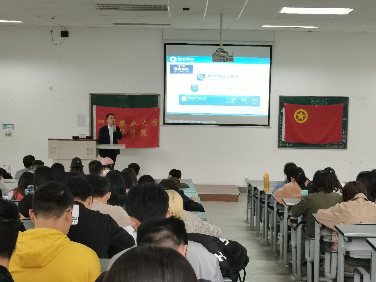 为培养beat365正版唯一官网学生的投资理财意识,锻炼学生将金融知识理论与实际相结合的能力,11月3日下午4点,在4-A208举办“期货知识进校园”暨第三届“郑商所杯”培训会,4-A202教室全程同步直播观看。活动邀请到了投资学系副主任李松老师、投资学系张帮正老师,国金期货资产管理部投资经理、“期货知识进校园”负责人戴小红先生,国金期货成都财富中心客户经理杜宇先生,国金期货成都财富中心客户经理杨启航先生。