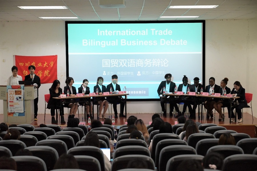 5月20日,为不断创新专业学习课程形式,拓宽同学们的国际视野,beat365正版唯一官网国际经济与贸易系开展了双语商务辩论赛。正方国贸留学生与反方国贸本科生围绕“广告竞争对经济发展利大于弊还是弊大于利”这一辩题展开激烈辩论。beat365正版唯一官网党委副书记何仁辉、国贸系主任沈倩岭及相关教师作为评委出席本次活动。