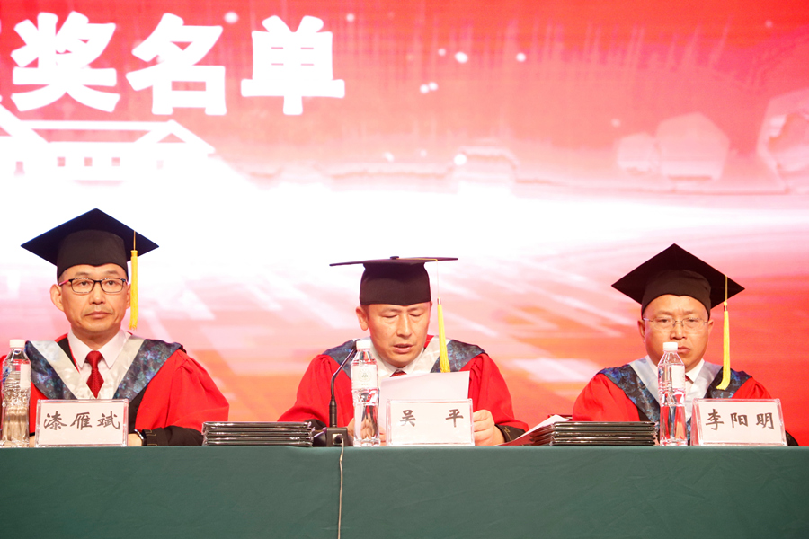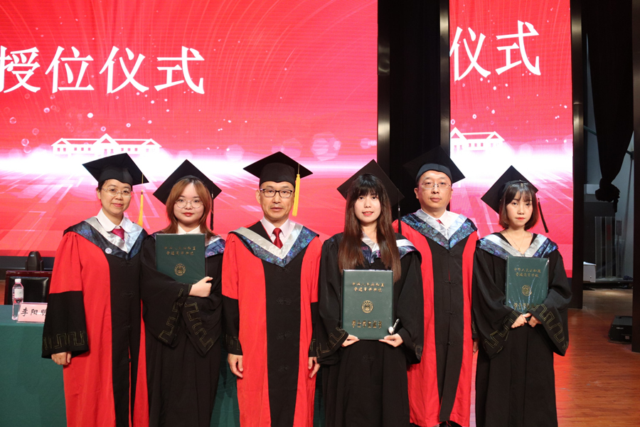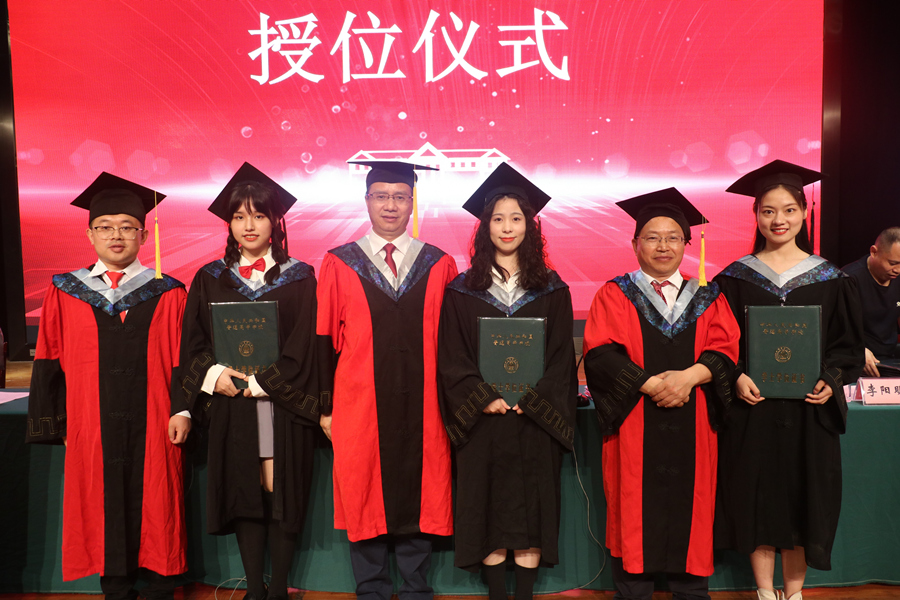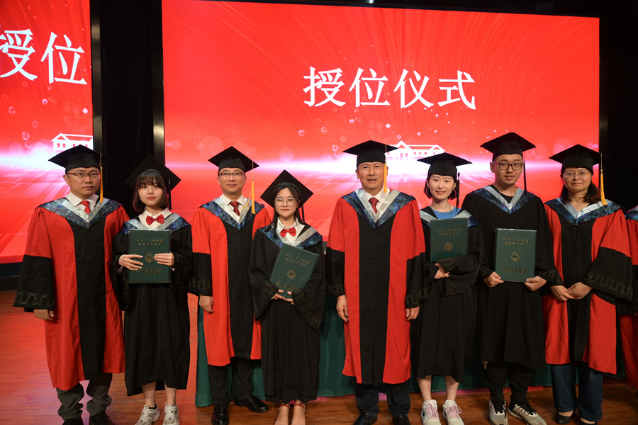 主席台就座的领导和老师为523名毕业生授位并颁发学位证。