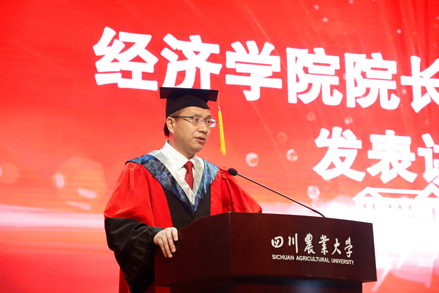 蒋远胜满怀激动地说:“我由衷地为你们的成长、进步和成绩感到高兴,为学院拥有你们这样优秀的学子而感到骄傲!”蒋远胜把“立足中华民族伟大复兴的战略全局和世界百年未有之大变局,心怀‘国之大者’,把握大势、敢于担当、善于作为,为服务国家富强、民族复兴、人民幸福贡献力量”作为对2021届毕业生的临别寄语,并提出三点期望:永怀为民报国之志,争当“经世济民”之才;坚守追求真理之心,实践“行稳致远”之智;秉持学经强农之心,勇担“民族复兴”之任。
