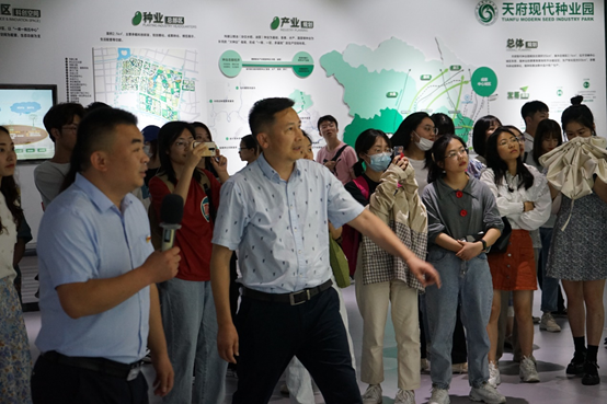 在天府现代种业园区,园区负责人王红睿详细地为同学们介绍了园区“一库一院五中心”的整体布局,同时通过视频资料、实物展示、参观展览馆向师生说明了我国现阶段种业发展现状及园区未来发展规划、园区投融资等情况。同学们结合课堂所学知识针对园区融资结构、盈利模式以及项目潜在的风险与讲解人员进行了深入的交流。在参观水美乡村项目夹关茶悦小镇及生物多样性博物馆时,项目负责人为师生介绍了邛崃生态旅游的现状和特点,重点介绍了项目的选址、项目发展前景及差异化竞争优势,详细生动的展示了生态文明建设对乡村振兴的重大支撑作用以及“绿水青山就是金山银山”的发展要义。