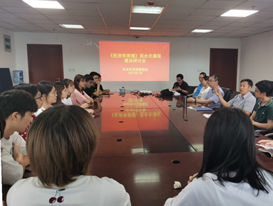 为持续推进投资学专业建设和课程建设高质量发展,7月12日,《投资学原理》课程组在1-403召开混合式课程建设研讨会,学院副院长吴平教授、教学督导组长肖诗顺教授,课程组全体老师、14名学生代表参加会议。会议由课程组负责人、投资学系主任王玉峰教授主持。