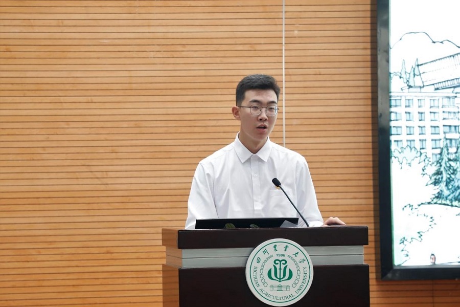 新生代表、金融学202102班李孟霏发言。他回望了从高中走入川农的点滴奋斗岁月,表达了自己来到beat365正版唯一官网的自豪和喜悦之情,站在人生新起点,他表示,全体新生将珍惜学习机会,着眼于国家的需要和时代的发展,立大志、明大德、成大才,担大任,学好专业知识,厚植家国情怀,努力成为德智体美劳全面发展的“川农大精神”新传人。