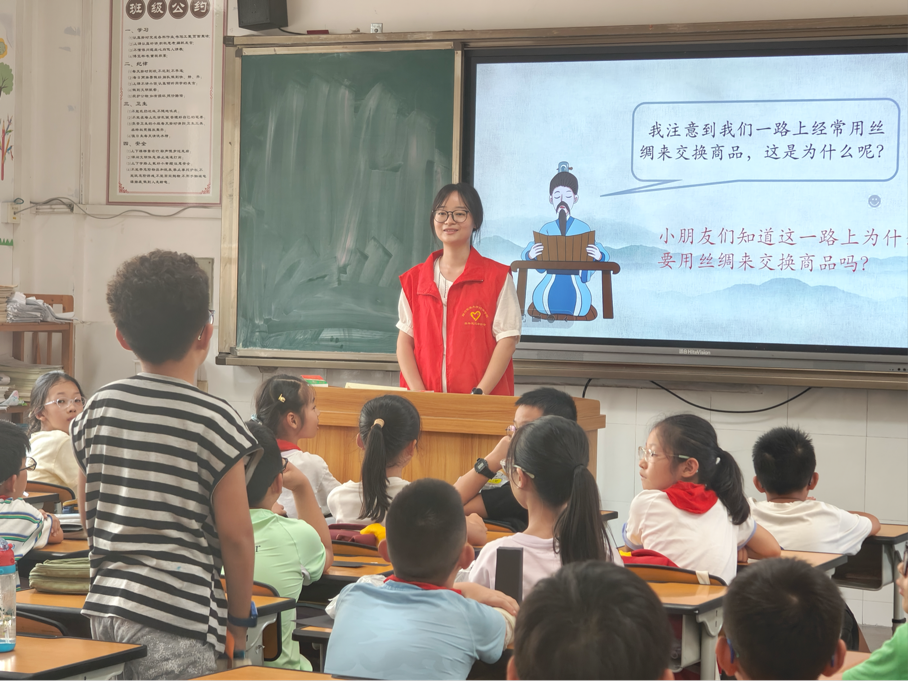9月20日下午,学院“寻耕乐读”志愿服务团队带领小朋友们开启新学期的首场穿越时空旅行。伴随着轰隆的雷声,志愿老师与小朋友们一起回到了那个传奇的时代——汉朝,一同探索丝绸之路的发迹,去解密贸易路上的神奇故事。