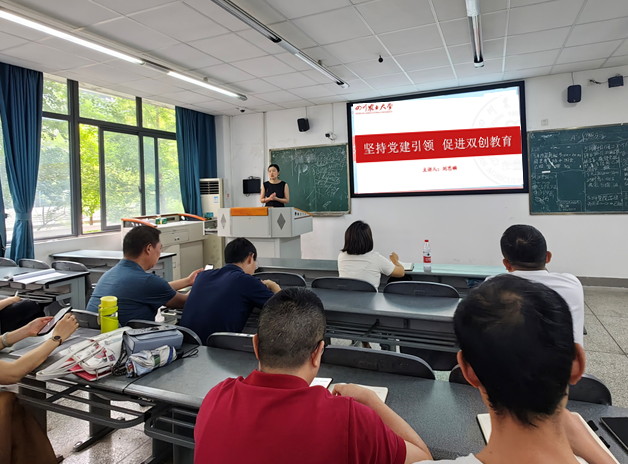 刘思麟强调,作为高校育人系统的重要组成部分,党建工作与“双创”教育共同承担着立德树人的重任。在课上,刘思麟为老师们指明了如何围绕习近平新时代中国特色社会主义思想、党的二十大精神并结合学科特色开展学生“双创”指导。还梳理了学校在“双创”育人中的政策指引、近年来“双创”竞赛中优秀作品的选题分析等信息。党建工作对“双创”教育具有价值引领作用,“双创”教育也是党建工作最有效的载体之一,二者在育人中能起到“1+12”的协同效应。