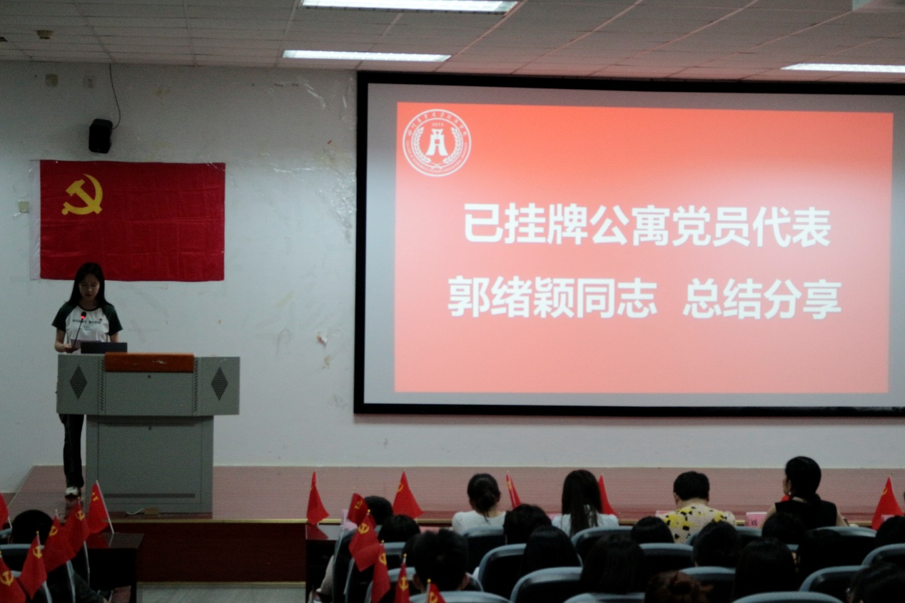 在公寓先锋模范作用分享环节,已挂牌公寓党员代表郭绪颖结合自身实践,讲述了“从文明寝室创建到学业帮扶小组”的服务故事:“党员身份不是荣誉标签,而是要让同学看得见、摸得着、信得过的行动标杆。”她所在的党员示范寝室,通过建立“每日微分享、每周小课堂”机制,带动周边寝室平均绩点提升0.3,生动诠释了“一个党员一面旗”的先锋力量。