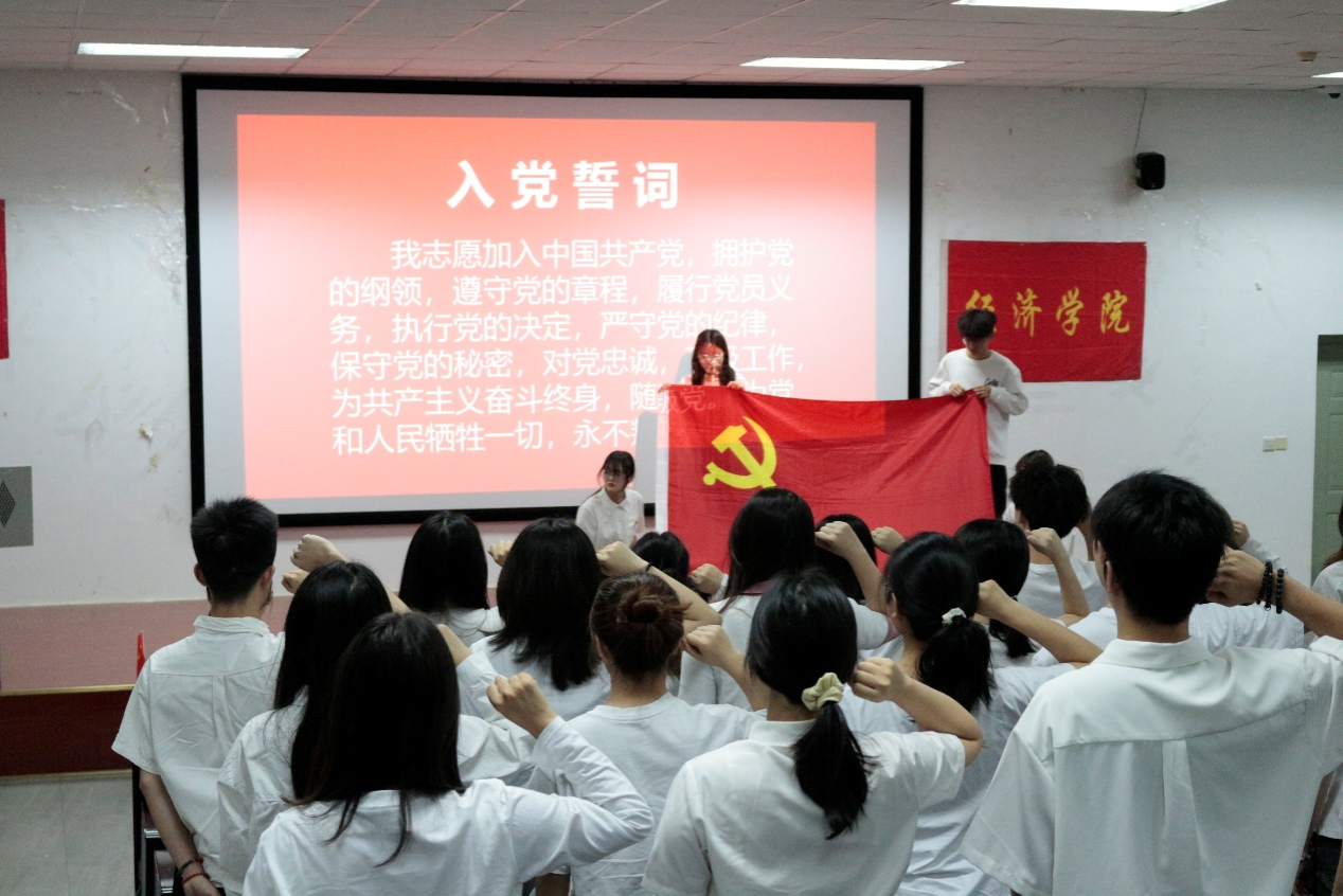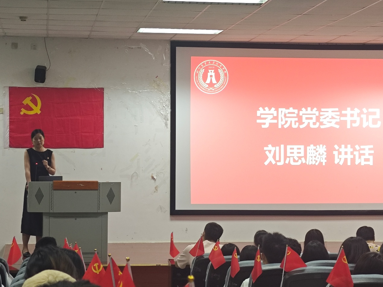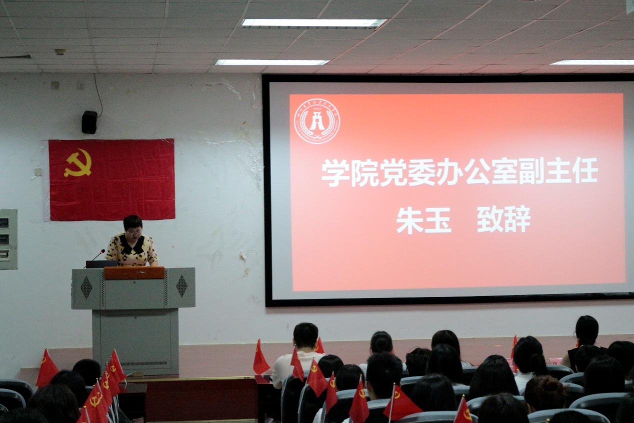 仪式在庄严肃穆的《国际歌》旋律中拉开帷幕。学院党委办公室副主任朱玉首先致辞,她以“政治生命的新起点”为引,深刻阐述了入党宣誓的政治内涵:“面对党旗庄严宣誓,是对党忠诚的铮铮承诺,更是践行‘为人民服务’宗旨的终身契约。”她寄语新党员,要将誓言刻入灵魂、融入行动,在时代浪潮中站稳信仰脚跟。