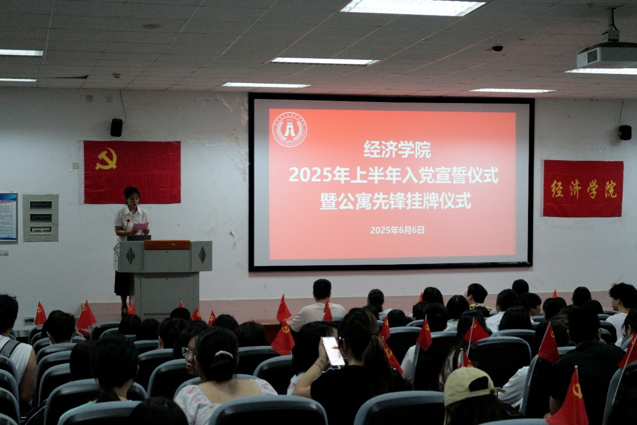 传承红色基因,践行青春使命。6月6日,我院2025年上半年入党宣誓暨公寓先锋挂牌仪式在四教A区102教室庄严举行。学院党委领导班子成员、各党支部书记、新发展党员及入党积极分子代表等百余人齐聚一堂,共同见证这一神圣时刻。