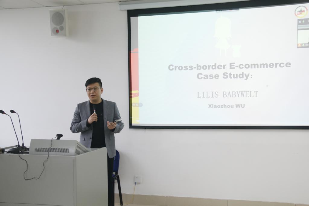 Mr. Xi Zhen, Director of the German Pavilion, first introduced the construction and development of the China-Europe Railway Express along the Belt and Road and the construction process of the German Pavilion. Starting from the concept of e-commerce and the development process of O2O, Mr. Wu Xiaozhou, the head of the cross-border mall of the German Pavilion, analyzed the current situation of the cross-border e-commerce industry and personal prospects for future trends to the teachers and international students present.